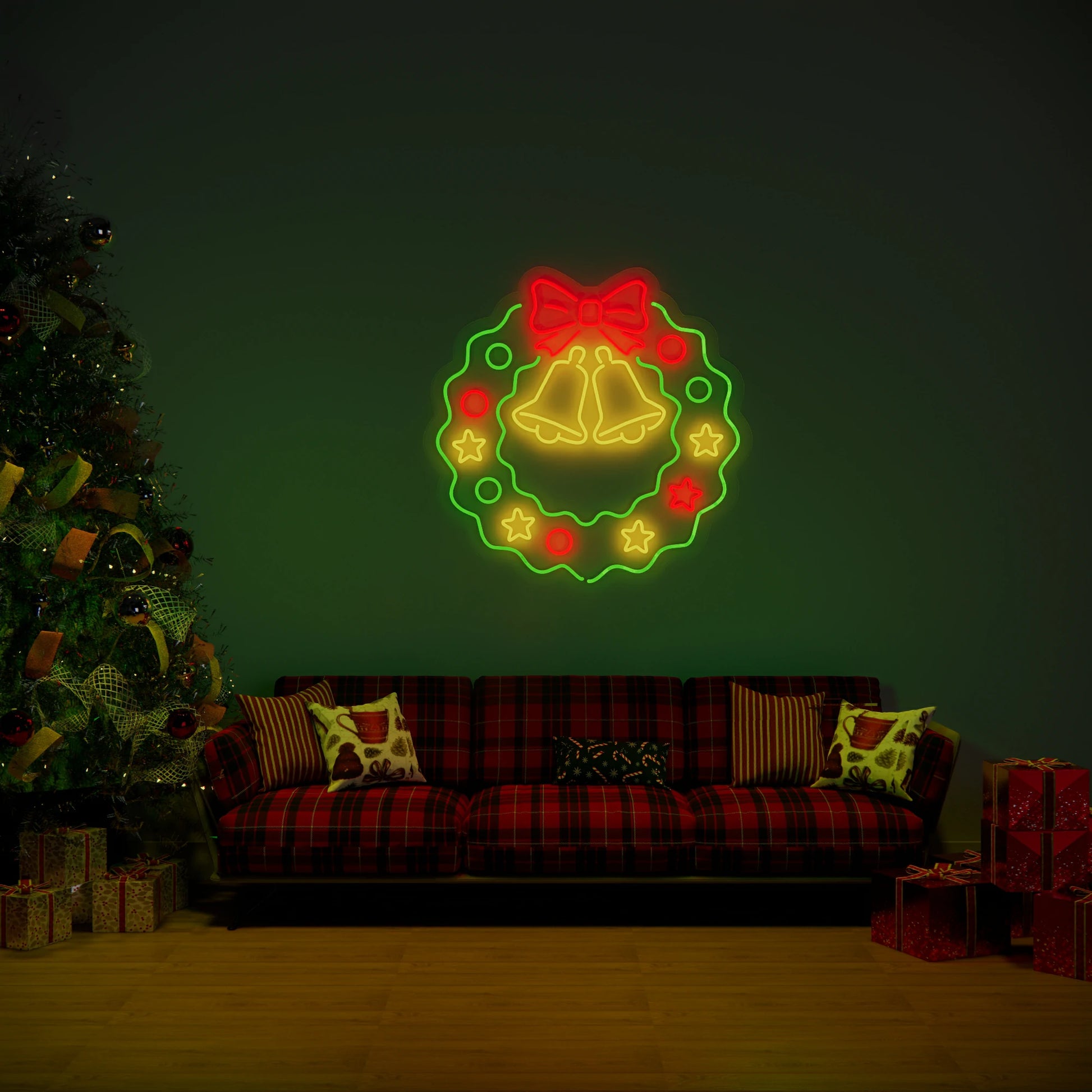 Christmas Wreath Neon Sign for Modern Door & Wall Hanging Decor