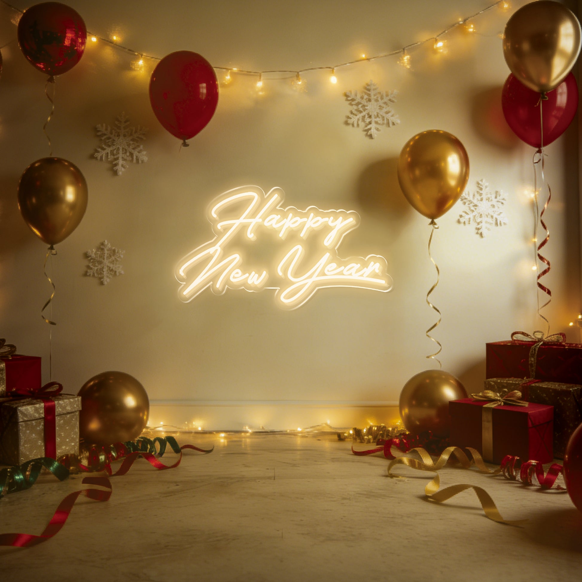"Happy New Year" – a phrase that launches new beginnings and fresh dreams. This neon sign is designed to be the life of the party, radiating energy and excitement. It sets the perfect mood for the countdown, illuminating your hopes for the year ahead.